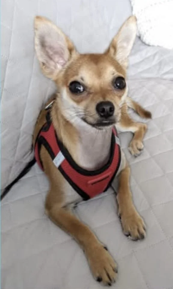 Details: Peanut is a male Chihuahua, about 7 lbs and around 1.5 years old at the time of his disappearance, which makes him around 5.5 today. He has a body length of 14 inches.