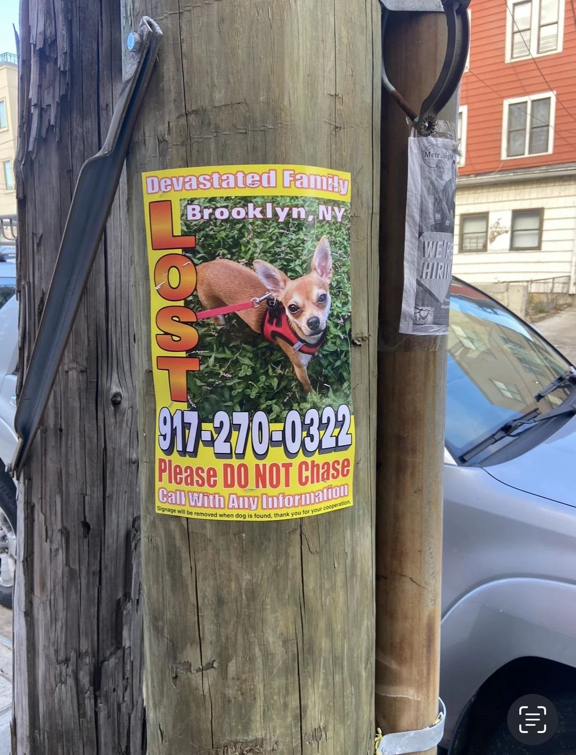 What Happened: The Owner’s brother was watching Peanut, stopped on 8th Ave, left the car for a moment, and when he came back, Peanut was gone.