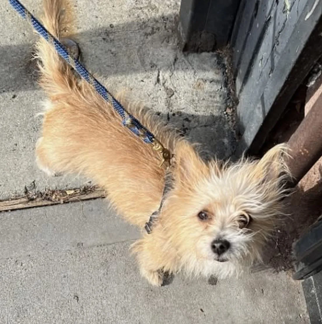 Details: Remi is an 8lb wire-haired terrier, golden honey in color, and she was last seen wearing a blue collar.